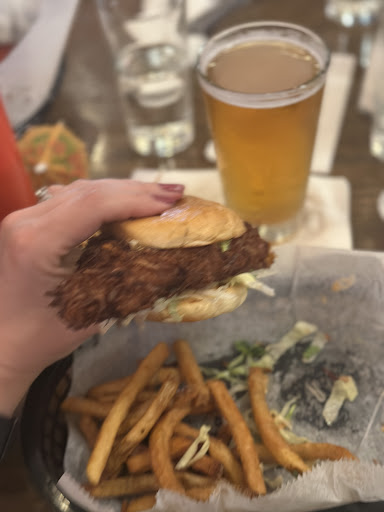The wings are FANTASTIC! They are on the small side, but perfectly brined, smoked just right, and seasoned lightly with a delicious dry rub. Then, they have just a kiss of the fryer to finish. The chicken sandwich looked over-fried at first glance, but it was not at all. The chicken breast was juicy, the breading was well balanced and crunchy. The sauce and pickles on it were perfect. The fish sandwich was a huge piece of cod, a delightful breading with the same yummy sauce and pickles. The fries were on the greasy side, even after we cooked them in the air fryer when we got home, but they tasted great. I will definitely go back to get the wings and try other food when I am...