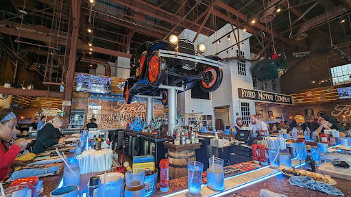 The atmosphere of Ford's Garage was undeniably captivating. The sight of a whole assembly line hanging from the ceiling, with a Model T in the center, was an impressive visual spectacle. The frozen bar top was another unique touch, ensuring that drinks remained chilled while adding to the overall appeal of the establishment.