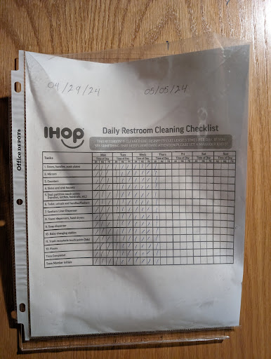 This is not my first time coming to this location but I don't really make an effort to come here often. I visited over the weekend with my girlfriend and the experience was just ok. When we arrived it took close to 10 minutes before we were actually greeted at the host stand, which happens, we just assumed they were short staffed like most places these days. After we were seated we placed our orders and received our food in a timely manner. The food was decent, eggs were cooked as we ordered, pancakes were delicious, the hashbrowns were kind of hard and tough to cut through and the bacon was rather tasteless. For drinks I ordered a chocolate milk which came out pretty warm, basically room temperature. I would have liked for it to be a bit colder. After eating the waitress came back and gave us the check, but then took quite some time to come back to actually collect our payment. Again, probably short staffed but it was a tad annoying to have to wait so long to leave. I will say the worst part of this trip was the bathroom experience. There was water all over the floor, toilet paper scattered about, and the smell was awful, like the bathroom hadn't been cleaned in weeks. I found out why shortly after. The cleaning chart hanging on the back of the door stated as much. We visited Sunday of 5/19 and the latest date on the chart was Sunday 5/5. I understand if they are indeed short staffed but that bathroom needed service badly, and it clearly wasn't getting it. All in all, I wouldn't come back here again. I'd rather check around and go with some other local breakfast spots. You might pay more but it's worth it...