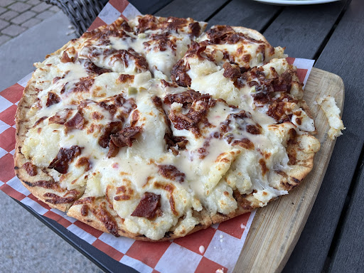 Read moreWe stopped in for apps and a drink. My husband was over the moon to find a “Mashed potato” pizza on the menu and it did not disappoint. Honestly, it was maybe the best pizza I’ve ever had! It’s officially called “The Irish” and he choose sausage (bacon was the the other choice ), mozzarella cheese, and a queso drizzle topped it off. I had the steak and cheese, onion egg rolls. The bacon haberno pepper jam to dip in was the highlight. The egg rolls were “fine”. Not overly flavorful and a bit overly dry for my taste. The atmosphere was great and entertaining. The clincher was the decorating in the ladies room. Any place can called it’s self “Limey”, but they had a picture of Montey Python in the collage on the bathroom walls....