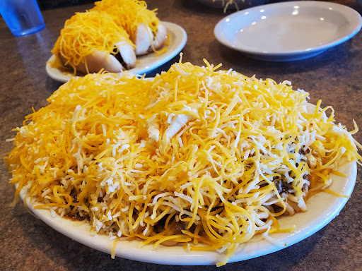 Chili spaghetti?! Hummm let me tell you people, it works and it's delicious. This place was my first introduction to the famous chili spaghetti and it did not disappoint. A mound of cheese ontop of a pile of noodles noodles chili. Yummmmm The sauce definitely has a heavy brown sugar taste to it that our waitress said new customers always say they recognize the flavor right away, but veterans do not. About 2/3s of the way in I could see how you don't taste it anymore. Our waitress asked if we would like mustard on it, I couldn't understand why anyone would add that to this dish but after trying it I could see how people probably love it that way, just not for me.