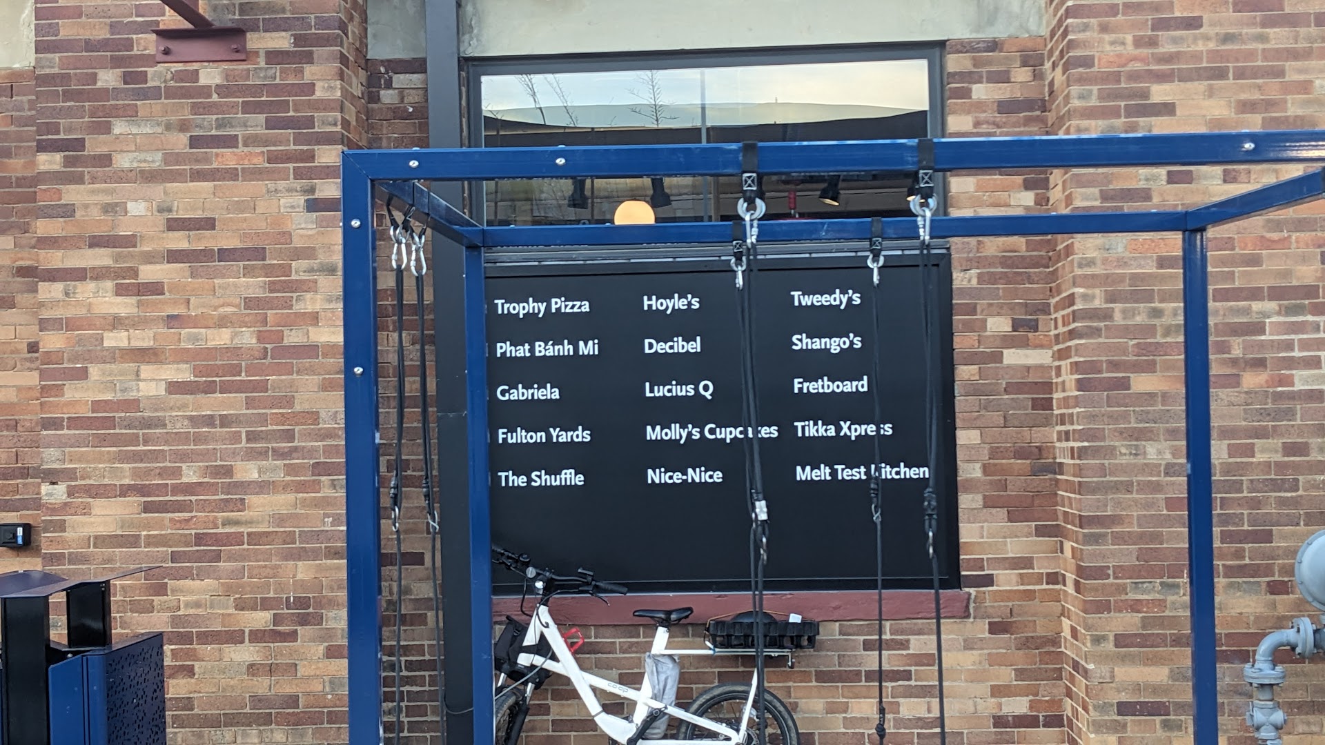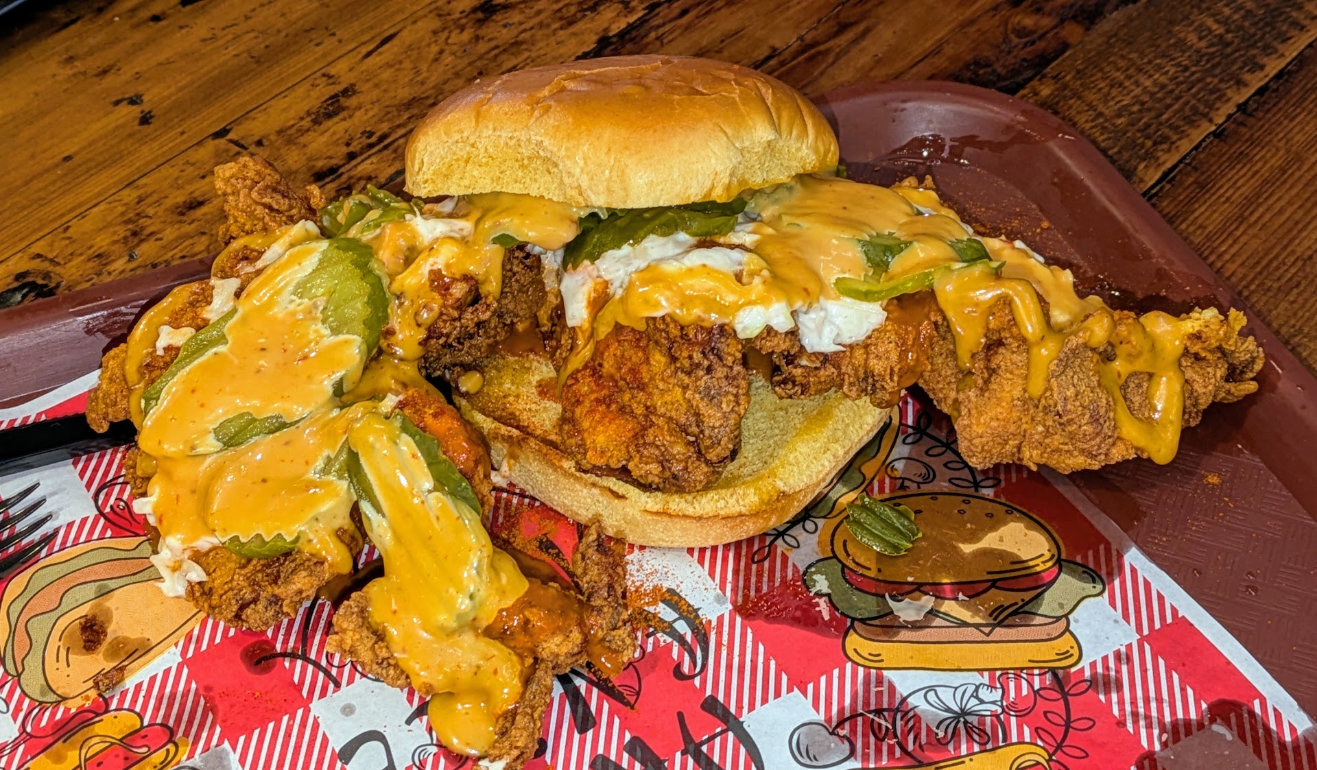 The pictures on these Google reviews made the food look amazing but it didn't help me to really understand what I was walking into. The location is tricky to get to if you've never been in the area. You have to go down a one-way street and hope to find a place to park otherwise you're going to be walking. But technically that's the way this type of location is set up, you would be doing a lot of walking around, shopping, entertainment atmosphere, night life, that type of thing. The actual Tweedy's restaurant is inside of a food court type of location. There are some tables and chairs but it's inside an area with multiple restaurants that you can walk up to and order from and then you can choose where you want to sit down afterwards. The actual order process is self-serve on a kiosk. They appear to be minimally staffed so the person making the food can answer some of your questions but there's no actual register attendees. The self-serve kiosk is not the easiest to use if you're looking for ways to customize an order. You can't just type in a note or request so you would have to ask the attendant if it's not a button already on the menu. The sides are listed totally separate from the burgers and the chicken sandwiches, they're not included with those main courses.