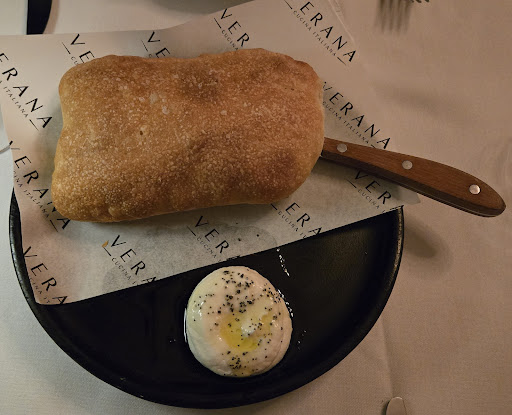 Service: We were originally seated immediately next to the entrance, and given the anniversary celebration, requested to sit in a less-trafficked area of the restaurant, which Verana accommodated. Our waiter was friendly and attentive but joked that he didn't know the Italian names of the dishes that we recited when ordering, and needed us to point to them on the physical menu, which was a little strange. Water service and dish bussing were attentive.