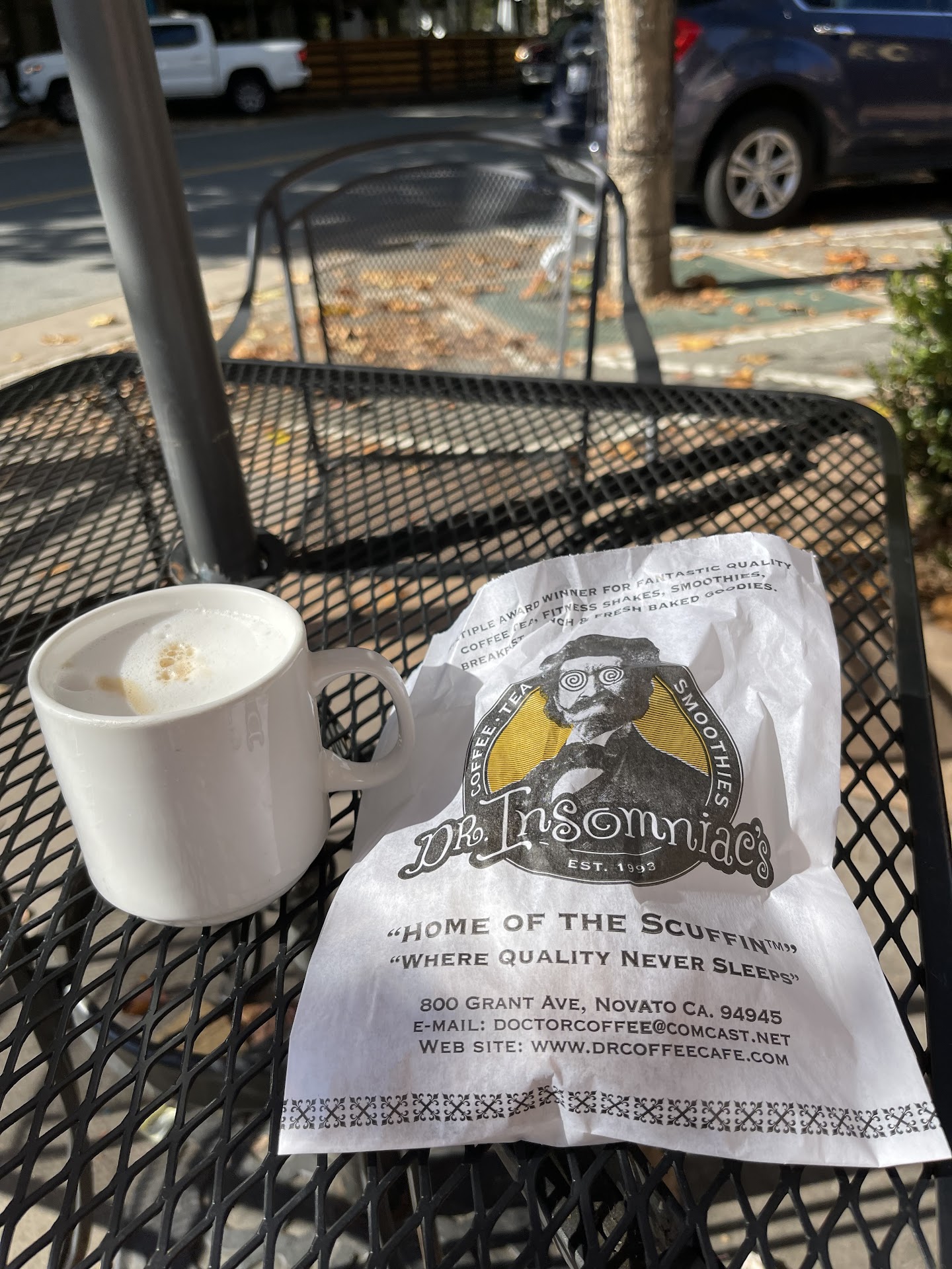 Read moreA unique locally owned place to have delicious coffee when in Novato. This is where the locals go on Grant Avenue. On a sunny day, being at Dr. Insomniacâs is delightful! Plenty of space to sit, whether it is out in front, bistro-sidewalk style or on the spacious patio outback. The scones are yummy! I had the peach blueberry. The man ahead of me in line recommended it as he had one. An odd flavor combination at first sight. But oh the taste is delicious. My cafe latte was satisfying with a generous amount of rich frothy whole milk. Get to Dr. Insomniacâs a bit early because it gets busy and the line is out the door. Service is excellent! Staff very friendly and helpful. If you want to get a sense of the real local town of Novato, Dr. Insomniacâs is the place, especially on...