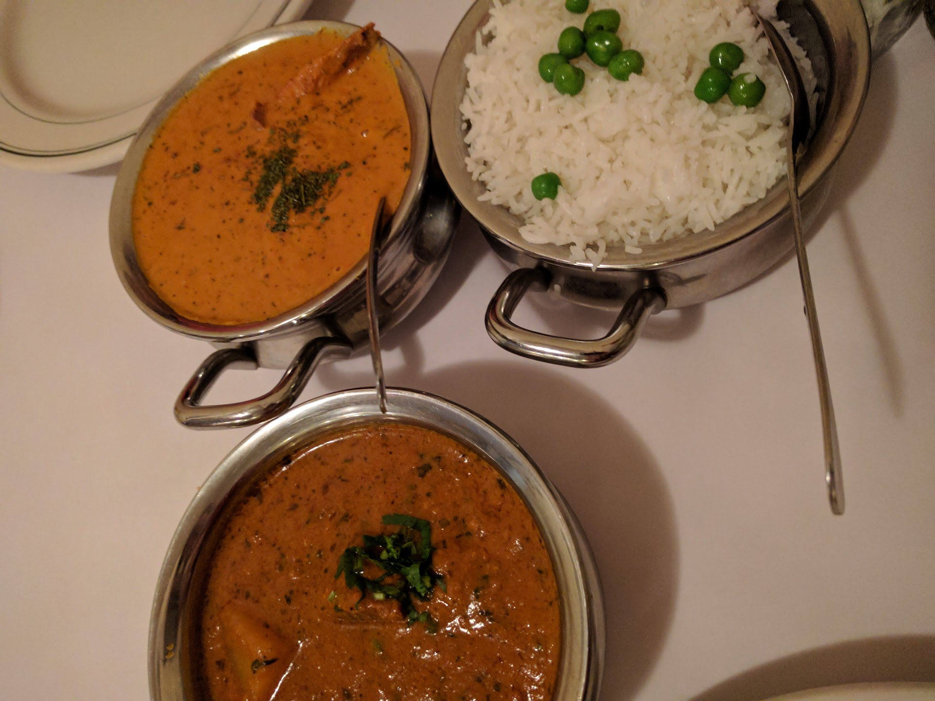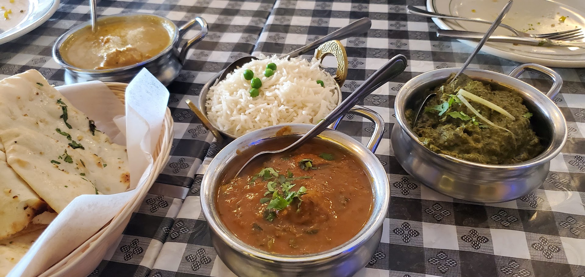Saag paneer - awesome spinach and paneer, super balanced and not too rich Bhaigan barta - wonderful subtle smoked eggplant without being too sweet veg korma - well balanced and satiating muttar paneer - delicious tomato based peas and paneer mulligatawny soup - soul satisfying