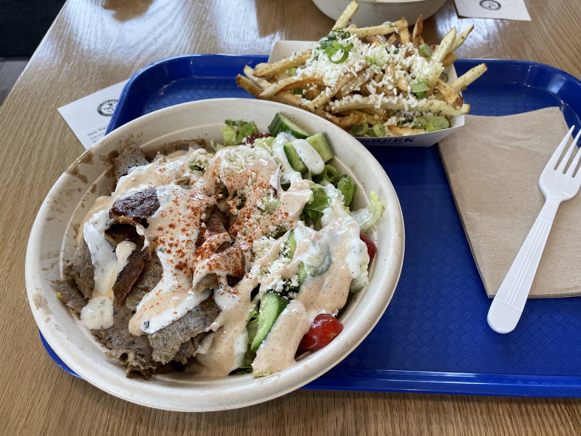 The food? Phenomenal! Their gyros are perfectly seasoned, with tender, juicy meat wrapped in pillowy soft pita bread. The tzatziki sauce is creamy and fresh, adding the perfect tangy complement to every bite. If you're a fan of fries, don't skip their Greek-style loaded fries — they're an indulgent masterpiece topped with feta, herbs, and just the right amount of sauce.