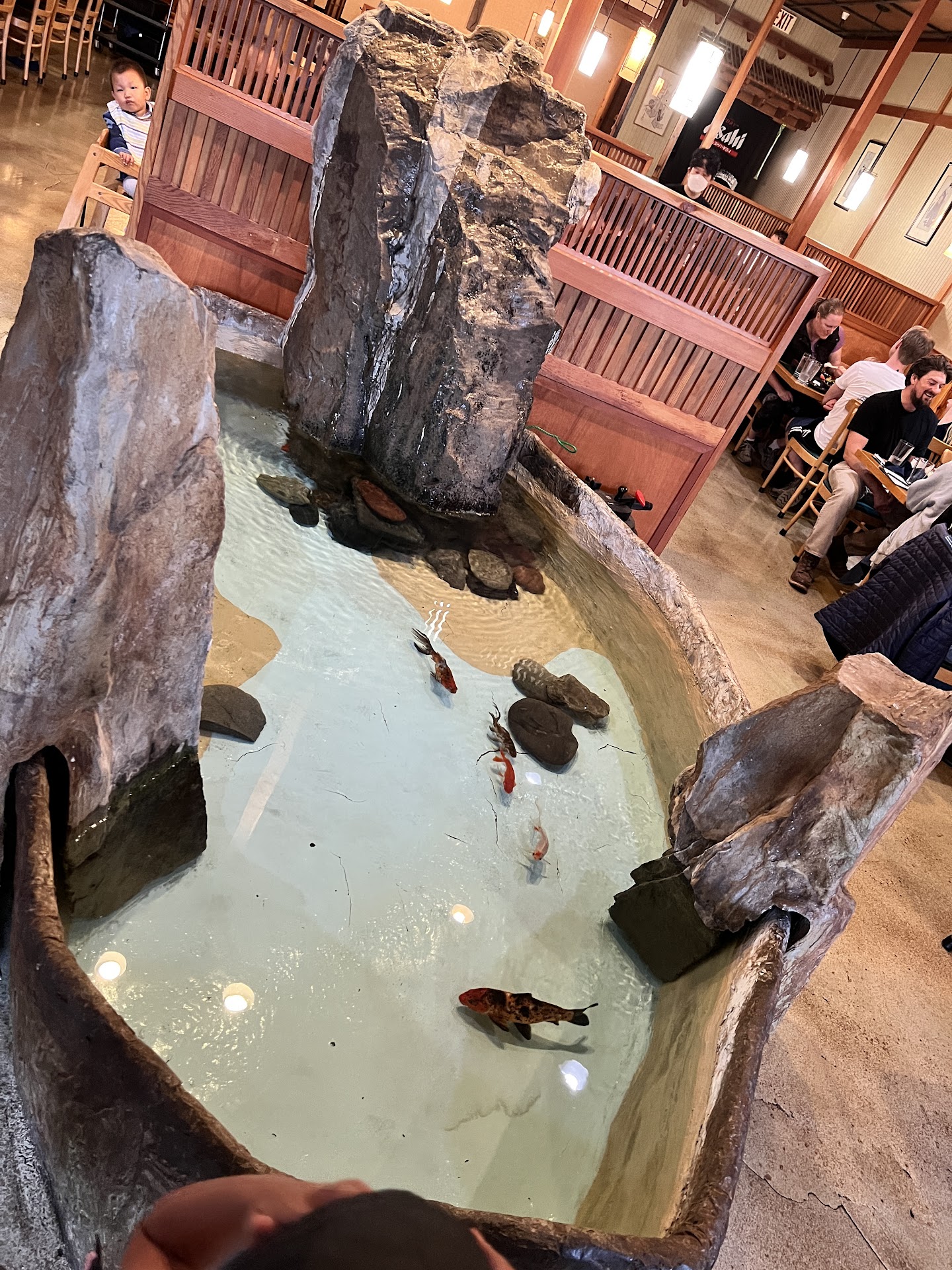 This place has a very nice ambiance with the front area housing a beautiful Koi pond that will keep you and your little ones (or old ones) entertained if you have to wait for a seat.