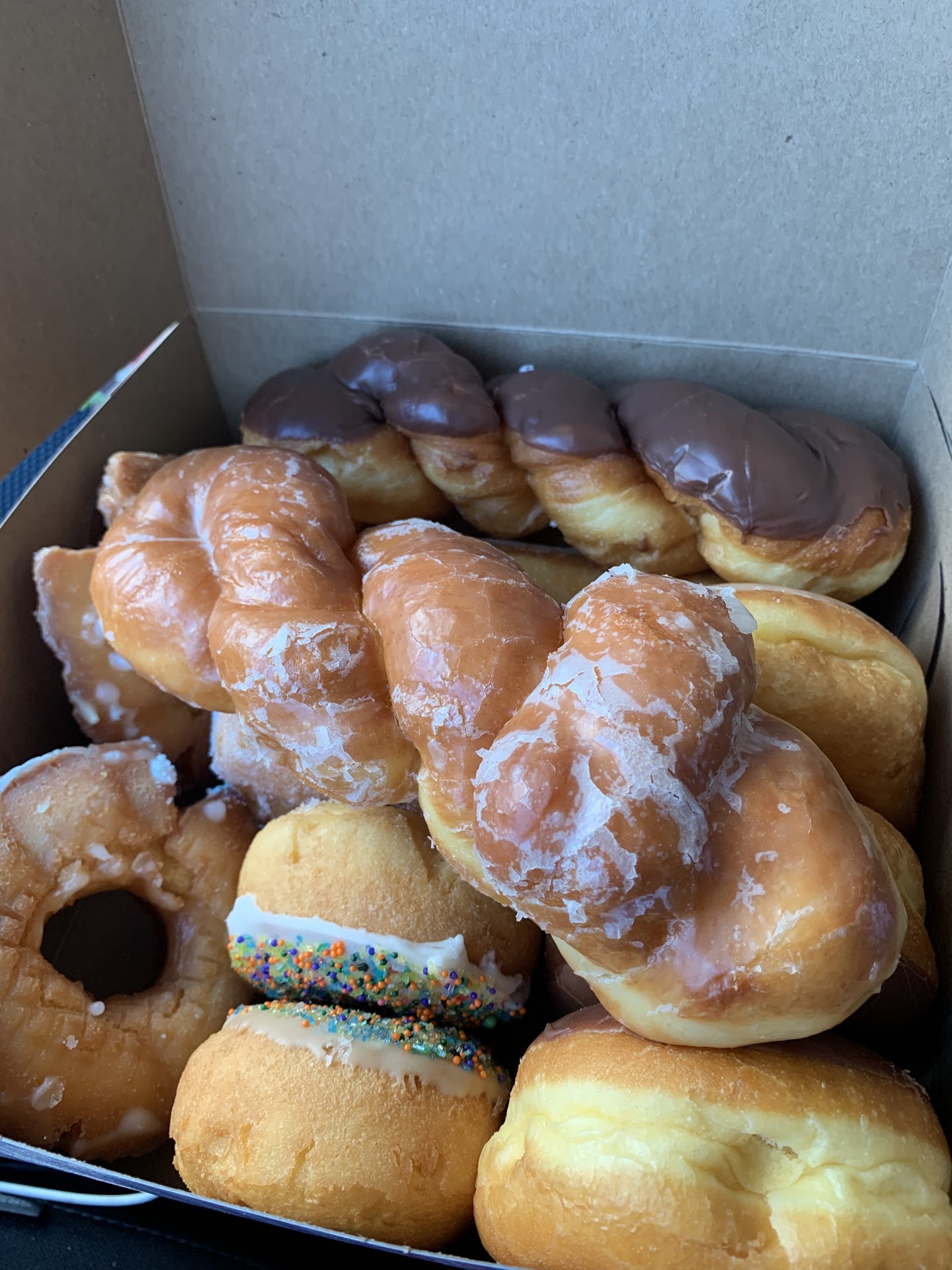 My wife was craving a bavarian cream filled donut. I called 5 minutes before what seemed like closing (submitted edit, they close at 2p) and the lovely young lady working informed me they were about to close but if I was 10 or 15 minutes away she'd keep things open. I arrived on time and got the donuts we wanted including a bonus donut! The Bavarian cream, a sprinkle cake, and a long john was like 7 bucks (plus a free risen glazed)! So cheap, but not sacrificing quality at all. They were as tasty or tastier than every solid little local donut shop that makes their own I've been...