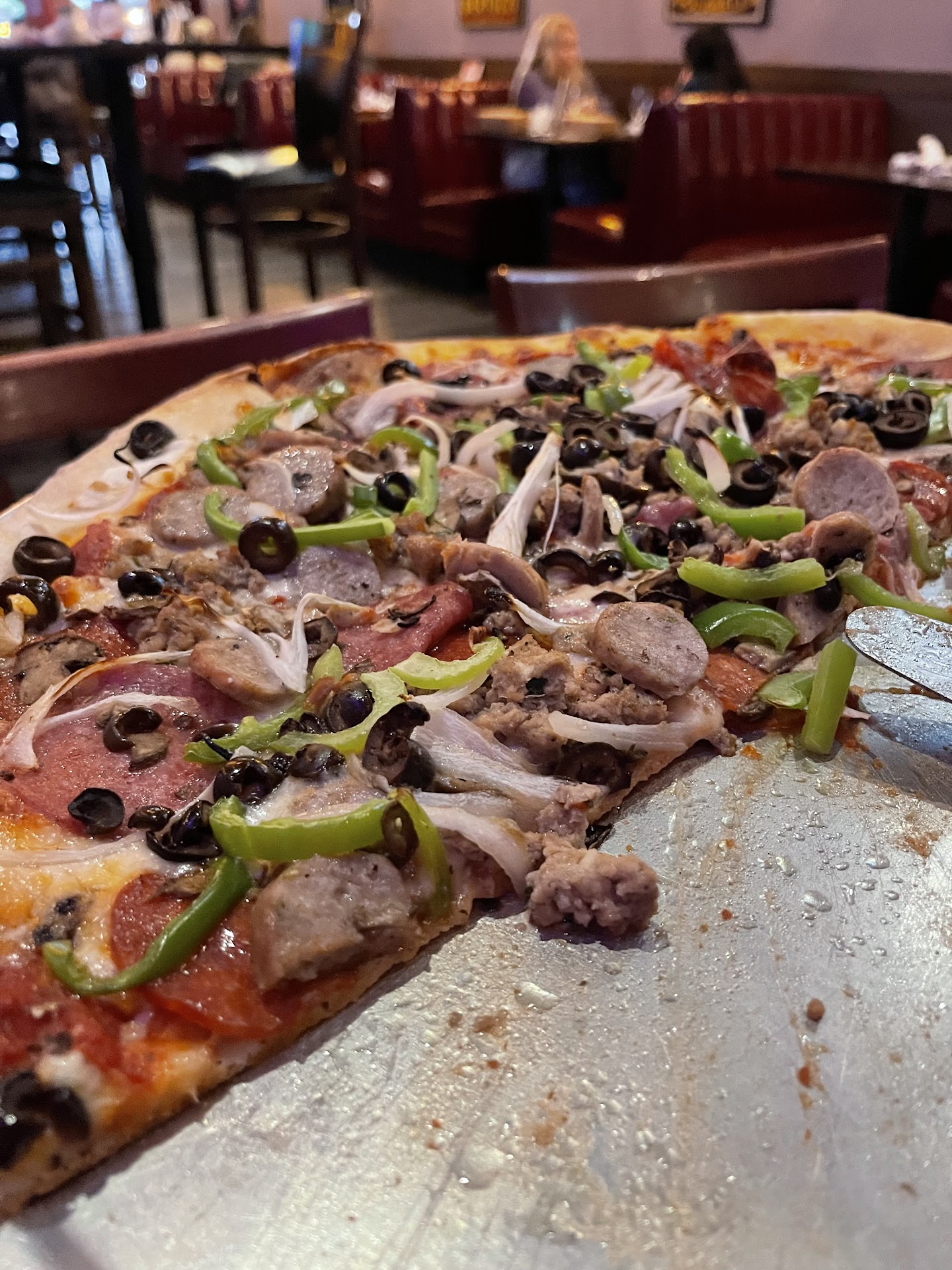 Two pizzas and three salads. Jimmy the Greek pizza was SO salty my guests couldn't eat it. Ordered one Ceasar salad and two wedge salads. Was told the salads would feed two people. What a joke, two quarter heads of ice burg lettuce with a tablespoon of toppings. A TABLESPOON. At $ 16 each you gotta do better. No one would be satisfied with this. $137.00 so disappointed and when the guy at the counter asked the cook to remake salads he started yelling at him. So unprofessional I was floored by his attitude. Clearly...