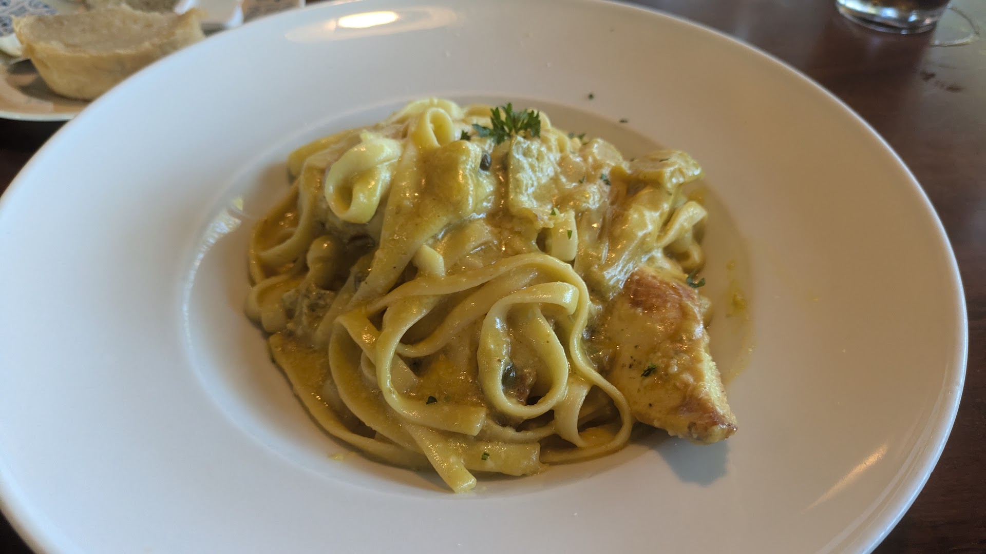 After a wait of around 10 minutes, our meals arrived. My wife’s Chicken Lemonato, served with rice, had an extremely heavy sauce. While the lemon flavor was strong and the sauce thick, it was also quite salty. The chicken on both of our plates was dry, relying heavily on the sauce for moisture, but the sauce itself was too overpowering. My dish, served with pasta, fared a bit better for me since I prefer pasta to rice, but the strong lemon flavor was still overwhelming.