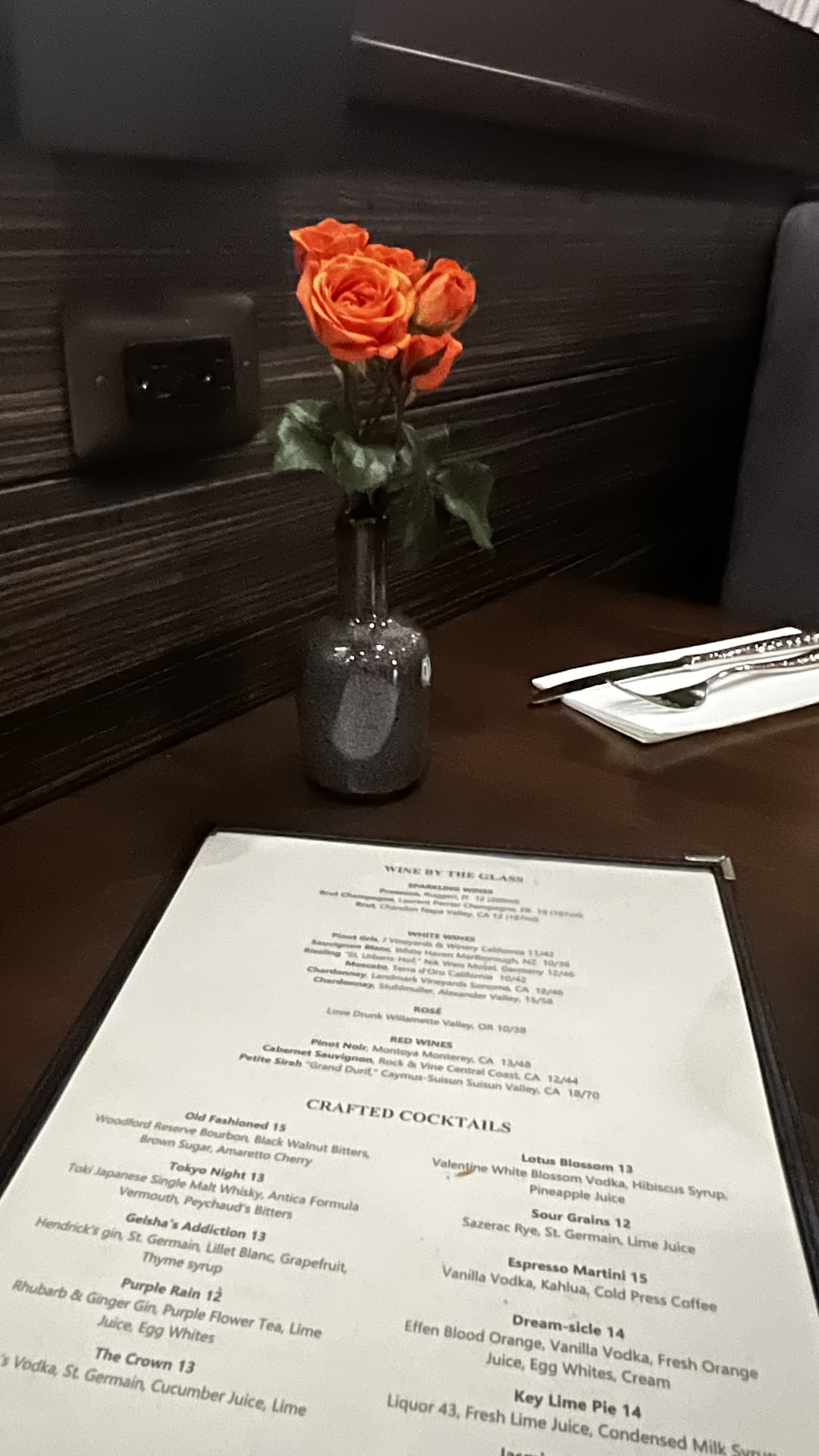 My husband and adult daughter took me here for my birthday. The food and drinks surpassed my expectations! Atmosphere kind of reminds me of a speakeasy which I love! We ordered/shared several items: Five Spice Calamari - best calamari I have ever had! Salmon Carpaccio - so delicious we wished we had ordered one for each of us! Pan fried Steamed Dumplings - OMG! Excellent dumplings and my daughter is a dumpling snob! Crab Cake - wish there were 3 instead of 2 so we wouldn't have had to share! Truffle Fried Rice Trio - This dish was beyond fantastic! Lemon Raspberry Layered Cheesecake - my daughter and I ordered this dessert and loved it! Cinnamon Coffee Cake, Salted Caramel Ice Cream - my husband ordered this dessert, and I thought he was going to lick the plate!
