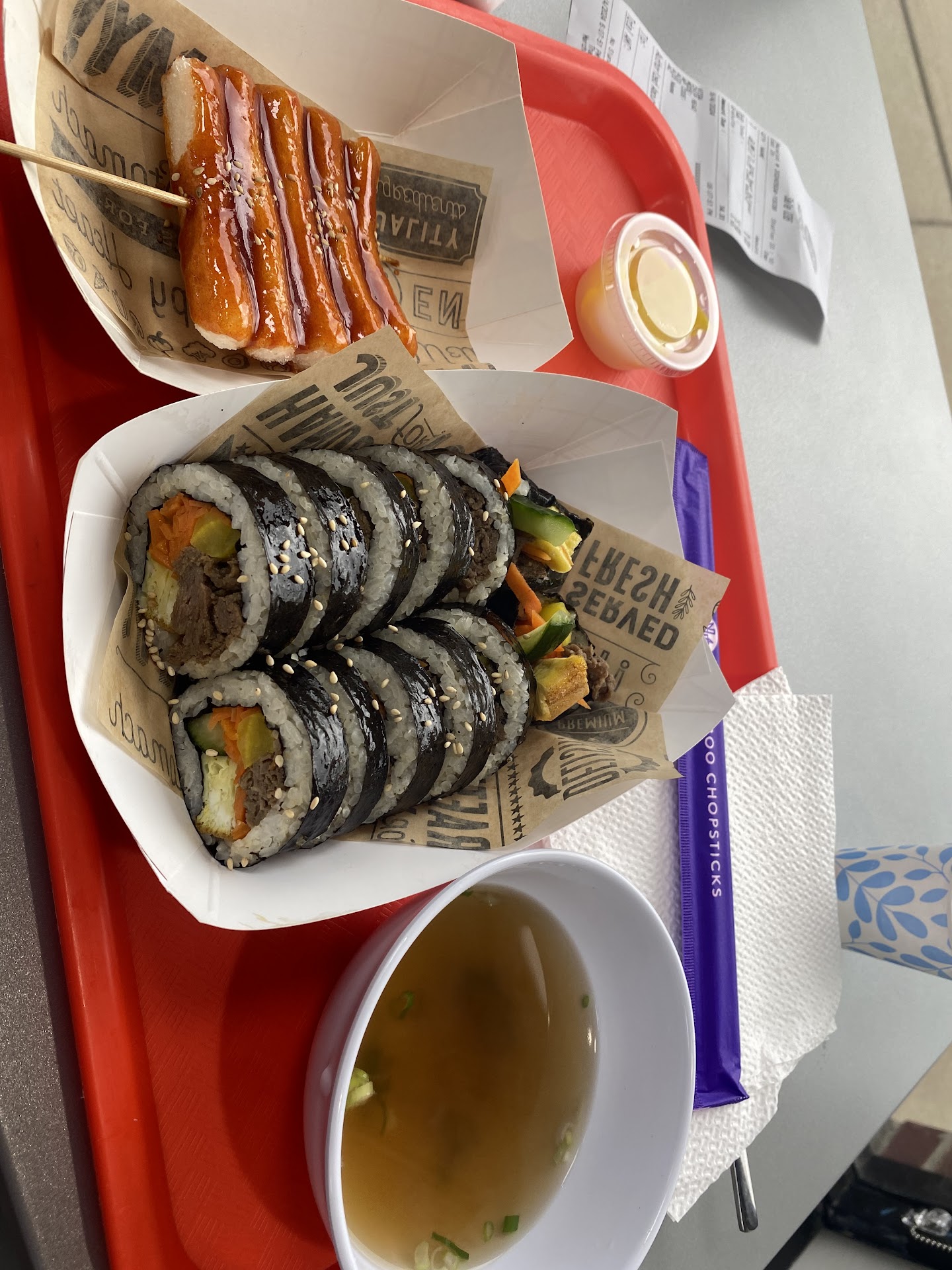 Read moreFirst time here and it was everything I wanted it to be from service to food! Staff was kind and wait time was less than 10 minutes. I ordered a bulgogi kimbap and rice cake skewers. Kimbap was delicious but I want to talk about the rice cake… it was crunchy, chewy (not too much) and soft at the same time!! Sauce was not too spicy, but just the right amount. They even served me some sort of anchovy broth I think. Really good. Very clean space and straightforward. Will be coming back to try some of their other items! Wish I lived...