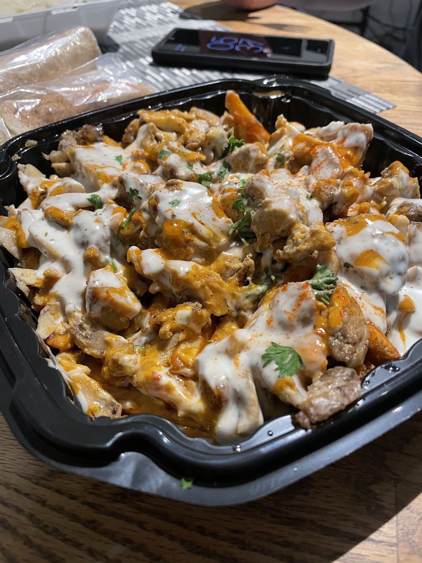 Food: When ordering from this place, be warned that there are ingredients included that are not discussed in the actual description on the menu (tip to the owners, please include a more detailed list of whatâs included in the meals so people know what theyâre ordering). For instance, my girlfriend has an unfortunate allergy to pickles, and she ordered a chicken wrap that did NOT let anyone know it had pickles inside the wrap. She couldâve done her due diligence by asking, but thatâs the point of having a description on your dishes. I ordered the garlic almond rice gallayah, and despite my Mediterranean ignorance, there was no description of the peppers, tomatoes, and other ingredients inside the main description of the dish. You would have to do homework when ordering food from here and thatâs not okay, the owners cannot assume everyone knows what gallayah is or whatâs inside every dish.