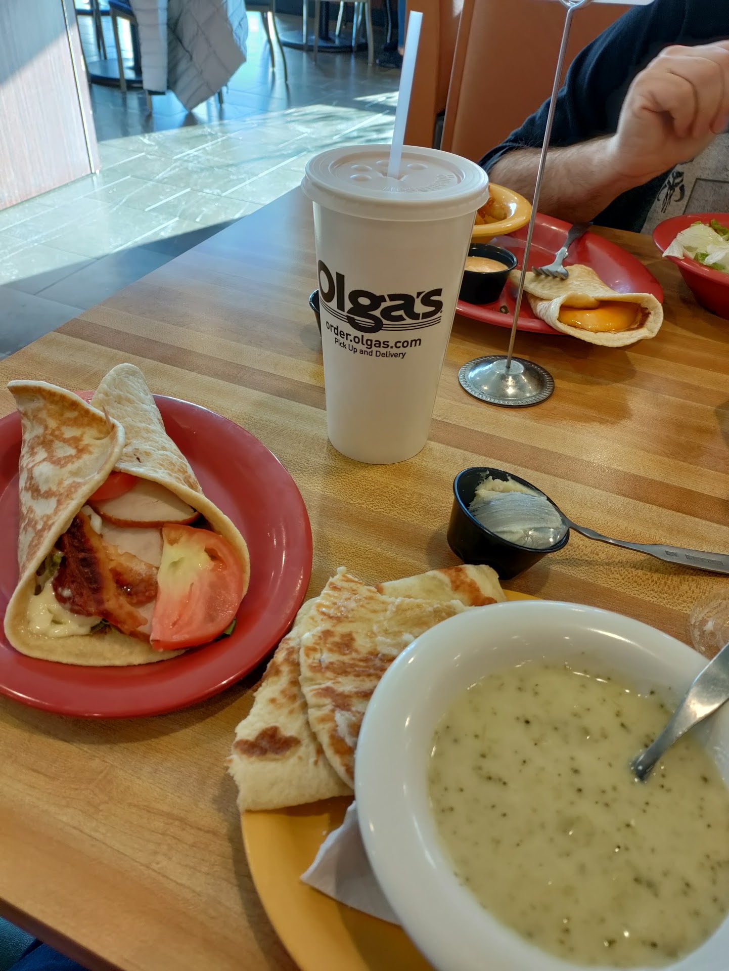 Read moreI normally love Olgaâs. Itâs my favorite place to go but today in Novi was just awful! Waitress rarely came over to us to refill drinks (I usually will drink three or four iced teas and only got one refill). When my soup was brought to me I had no spoon. Waitress never came back so I asked a random waitress for a spoon. She came back two minutes later to say that they were out and were running some through the wash. Couple more minutes later the same girl came by and put a spoon on the table and kept walking. The spoon was COVERED in dried gunky chili or soup. Iâm not talking a small speck of spoon Iâm talking about the whole spoon part that you eat with. Are you kidding me? The whole time, our waitress STILL has not come by. So a minute later I grab the man that looks like a manager and ask for a CLEAN spoon or a to go one so I can eat the soup that is now getting cold. He takes the spoon, puts it in the kitchen and nonchalantly says sorry and hands me a to go spoon. Soup is now luke warm but I donât care cuz Iâm hungry so I eat it. We get all of our food and everything is great but Iâm still feeling sketchy because of that spoon. After a while, we get the books that are supposed to have our bills in it. Waitress walks away and donât see her for a while...no bills in the books (books are empty). She comes back and we have to tell her thereâs no check so she goes, gets the check and then disappears again. Still never got another refill. No apology regarding the soup and spoon issue. Fed up. Iâve never had such a terrible experience with Olgas before. Very frustrating. This was my first time at the Novi location and I was not impressed. Iâm sure Iâll go again to give it another chance because I love Olgaâs but this was just too terrible of an experience to not...