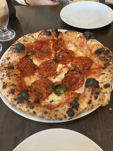 The pizza. Lets talk about the pizza. I ordered the Hot Honey pie (I’m a sucker for hot honey). The pie came with spicy soppressata, which was such a fantastic addition. Again, fresh fresh fresh ingredients. Everything is clearly imported from the motherland and it adds so much depth and quality to the pizza. The cook on it was magical. The char and bitterness of the dough mixed with the sweetness of the hot honey and soppressata. When finished, I was given the ultimate sign of a great pizza place - blackened fingers, due to how well the pizza is cooked. Casuals will call it “burnt” but real pizza lovers know how much a quality char can add to a pizza. I was honestly blown away by how damn good the pizza was.