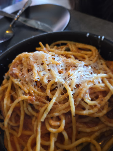 For reference, we ordered the dip trio, a beet and orange salad, the tako tacos, the vegetable medley, the potatoes with whipped goat cheese and no bacon, the meatball pasta without the meatballs and a recommended cocktail. I don't have photos...