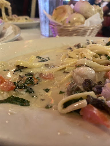 The "cream sauce" on the scallop linguini was the consistency of thin, watery soup broth instead of an actual cream sauce that should be thick, sticking to the pasta, and actually creamy.