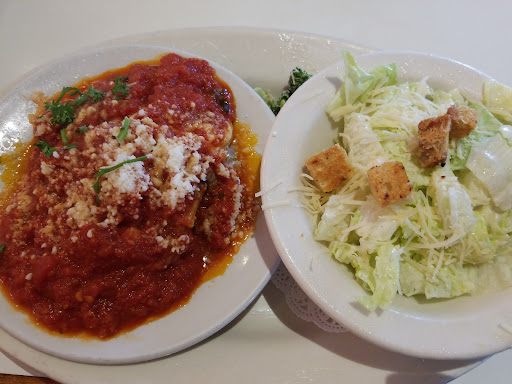 We arrived at about 11:15 am. The dining room was almost half full which was surprising to me for a weekday. The hostess wasnt in sight but came to see us right away. We were seated quickly and the server also came right away. She delivered our drinks right away and she asked if we were ready to order, which we werent. Btw our servers name was Kimie. In a small amount of time another server just passing by asked if we were ready to order. It's so great when you see other staff helping each other out with tables. This wasnt her table and she wont get the tip, but she helped out. That's awesome. Wish I had caught her name to give her props. I had the lunch special half lasagna and casar salad. The caesar dressing was a little watery to me. It would be better if it was creamier. It also seemed to be served on iceberg lettuce which is not traditional for caesar salad but it was crisp and fresh. The lasagna was good. I tend to be picky especially if its overly greasy. It was good. It had an appropriate ratio of pasta, ricotta, meat, & spinach. It was served with a good amount of marinara sauce with big chunks of diced tomatoes. I had 4 garlic bread knots total so I'm leaving this lunch feeling pretty full. The lunch special is available til 2pm (weekdays only?) It only cost $10.49.