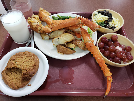 I am thoroughly impressed with today's lunch menu and set up. The staff said they are starting a new special where every Thursday will have a gourmet menu item. Today's menu consisted of lobster tail, crab legs, steak and polenta. There a few other dishes that I wasn't familiar with, but they all looked very good. First off, I think this place gets a bad rep for its facilities and set up. It's pretty awkward, but once you get over that, the food is very enjoyable. Also, they have very small cups. It's like they think adults will drink only the amount for a child.