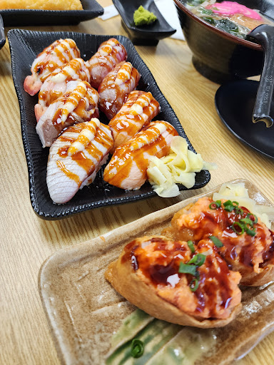 Our server was super friendly and helpful, especially since it was our first time there. She let us know that with our larger group, it would be more worth it to order a platter instead of individual sushi rolls. She also mentioned that the set platters are customizable, so we could swap items out. If you're switching something for a higher-end item, there's an upcharge, but if you're swapping something like seared salmon or ahi for regular, there's no extra cost, which was a nice touch.