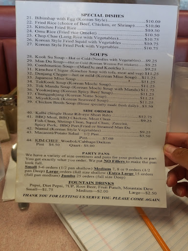 Read moreI really enjoyed the spicy pork. You will be served with a quick entree free of charge (soup and 2 bowls of kim chee; spicy and nonspicy). The service was fast and the food is affordable. Probably about 30+ people fit in the restaurant and I think they have a space for parties(don't quote me on that). They have a wall that displays the different sizing pans for catering. Cash, a minimum purchase of $10 using your credit/debit card acceptable. Restroom available so don't forget the key attached to a bottle. Free parking available on both sides of the building (back and front). Make sure you have cash because their card machine sometimes crashed. Popular among the locals and very delicious food! Check them out and...