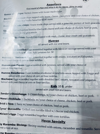 Read moreThe wait time was much longer than quoted .. we waited almost 15 mins inside. They forgot one of our meals and we didn't realize until we got home.. ok yes, I should have verified everything before leaving the parking lot but with such a large order (12 items) and us having to wait 15 minutes inside the restaurant for it I assumed it would have been correct. The food was less than edible, so ALOT of money wasted and almost everything thrown in the trash.. Their "queso" is more of a solidified burnt milk curdle with some hot salsa mixed in it. I wish I would have taken a picture but it was quickly tossed in disappoinment. We ordered chicken in our kids meals quesadillas and there was none. The quesadillas were ice cold when we got home. The tamal was crumbling and lacked flavor. The pollo marinado plate went into the trash. The chicken was pretty much dehydrated jerky. The chimichanga was supposed to be chicken but I'm pretty sure it was pork. They gave us giant burrito size tortillas so I dipped those in the beans which again I've had better but I was hungry from a long day at the beach and needed anything to eat at this point. My youngest ate two helpings of the rice. It tasted microwaved and lacked flavor but also had huge chunks of burnt clusters in it as well. The chips were very stale. Super disappointed in the...