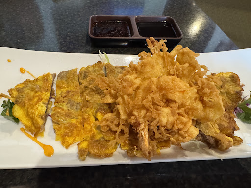 The meat jun is a must-try. The thinly sliced, marinated beef is coated in an egg batter and fried to golden perfection. It’s tender, slightly sweet, and pairs beautifully with rice and the tasty dipping sauce. The shrimp tempura is another standout. The shrimp are light and crispy, with a perfectly airy batter that isn’t greasy.