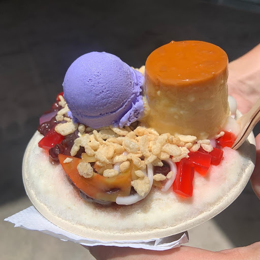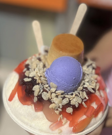 Read moreThe shave ice dishes are creatively overpriced and offer a plethora of custom toppings and flavors. As you can see in the pictures, the shaved ice is basically slopped into a bowl with toppings thrown on; leaving the dish with no texture or consistency like slop. Soon to be mush in the Hawaiian Heat. I've always enjoyed watching my shaved ice be made. The work and effort of shaping the perfect globe always gave me a better feeling about paying good money for frozen water with syrup on top. You won't find that here. No textured globe, just a bowl of mush for $16. I was shocked to hear the cost. Especially how fast these come flying out of the window. The profit margins here must be amazing. While the dish makes an excellent Instagram or Yelp photo, its taste and texture is unmoving. I will not be back. While there is parking, there is no seating available. There are some outside tables around the corner next to the escalator that goes down to Times grocery, but most are not shaded from...
