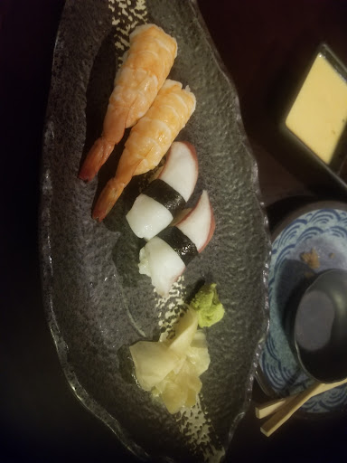 Main courses were the steak and scallop and the steak and lobster. We ordered medium and medium rare. What we received was medium well to well done. Only one piece of steak came out with a little sliver of pink. If it was a steak that I ordered at a steak house, I would have returned it. Another minor quibble was we both felt the steak portion was a little light in portion size. However, the flavors were on point and it was easy to let these little foibles pass because EVERYTHING was delicious. Once everything was done, I had to ask if my sushi was coming out and again I was told it was almost ready. From a timing perspective, I would have enjoyed the ebi and tako pieces coming out before the teppenyaki or at least with the teppenyaki, not like a forgotten desert course.