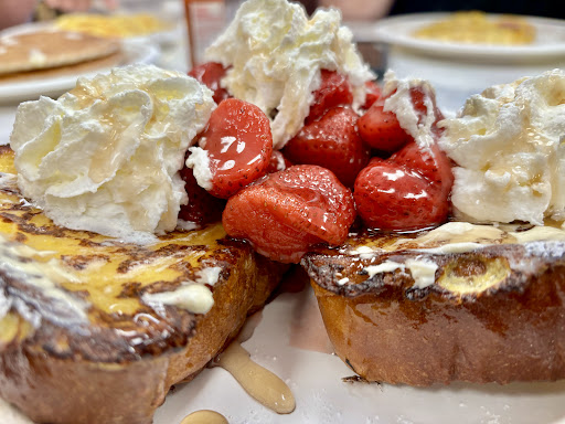 We also ordered the strawberry cheesecake pancakes. I thought it would be a strawberry cheesecake flavored batter but this wasn't the case. It was just regular pancakes with strawberries and whipped cream. I'm not sure where the cheesecake comes in, so I was a little disappointed but the pancakes themselves were good, nonetheless.