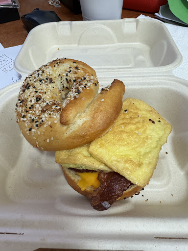 I ordered the bacon, egg, and cheese sandwich and the mochi waffle, which were both quite tasty and well-prepared. However, the coffee was very disappointing. I ordered a pistachio café latte. Its description was the following: espresso, milk, pistachio cream, vanilla, and pistachios (tiny bits), and there was no trace of pistachio or vanilla—just a faint hint of espresso overwhelmed by too much milk. It didn’t live up to expectations, especially compared to how enjoyable the food was.