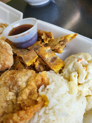 Delicious! My wife had the teriyaki chicken bowl and I scarfed the meat Jun and Hawaiian garlic chicken plate. Very impressive. The teriyaki chicken had a wonderful flavor unlike most teriyaki chicken I've ever had. The garlic chicken was super crunchy and delicious especially when dipped in the included sauce. The meat Jun was battered, fried, thin strips of beef and I dipped them in the included teriyaki sauce that was included. Also yummy! The mac salad was the best I've had on the island so far. Definitely check it out when you are in the area.