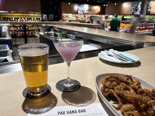 Pau Hana Bar is exactly what it is. A bar perfectly placed in the middle of Foodland to enjoy delicious plates and drinks before, after, or during work.