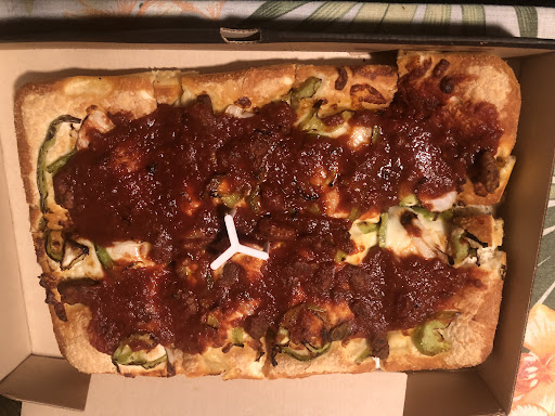 Since i needed medication picked up at longs, the husband picked up dinner here. I just ordered online and when he finished picking up the meds, it was ready. Quick. Easy. The 16 pc.Honey BBQ boneless wings ($14.99) Mini Cinnabon’s ($8.99+ $1.99 two extra icing) Detroit Supreme Pizza ($15.99) and the Italian Meat Pasta ($11.99) with breadsticks. Good lunch.