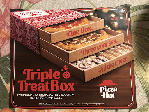 Updated:03/20/2023 We ordered online, a small order today at 9:00 pm at out Wahiawa Pizza Hut. The Big New Yorker Pizza, 8pcs. Boneless Honey BBQ wings, plus a $7 mini NCAA 2023 promo basketball for our Chi Fox Terrier. We were looking forward to eating but it was a HUGE let down. The only happy one was our dog with his mini basketball, playing and bouncing all over creation. The pizza wasn’t hot but warm, and the Boneless Honey BBQ wings-disappointing. The sauce didn’t even come close to covering my chicken. 90% of the chicken was NAKED. Butt naked. I was literally scrapping every bit of the foil paper insert to get some sauce 🙁