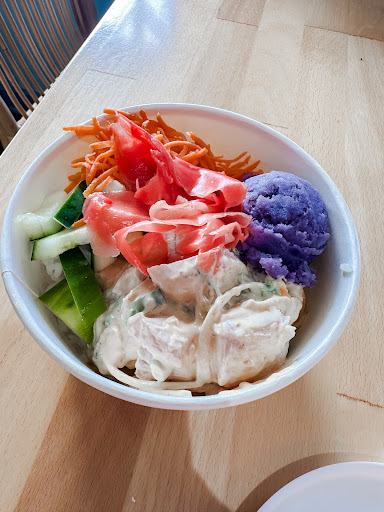 I got the blue marlin poke (flavored with a creamy roasted garlic and sesame sauce). The fish was fresh and flavorful. The toppings were good too! I especially liked the purple sweet potato mash. The ratio of fish, toppings, and rice was well-balanced.