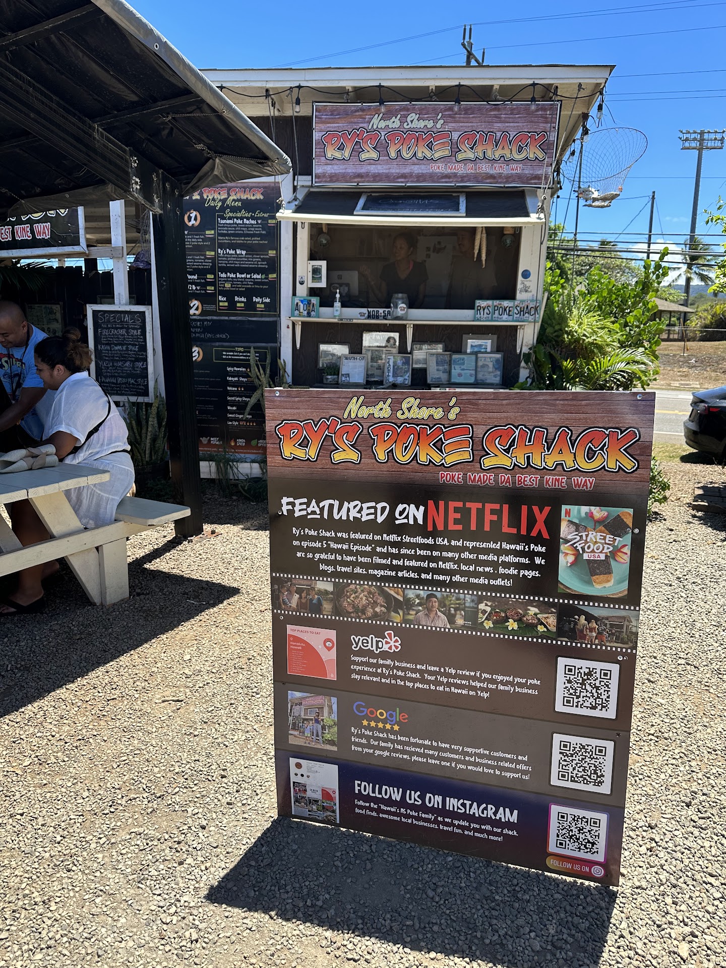 Read moreIf you're on the hunt for genuine, delicious Poke in a serene and picturesque environment, Ry's Poke Shack in Kahuku in the old Sugar Mill is your go-to destination. As an Arizona native, finding fresh fish is a rarity, so during our brief visit to the stunning North Shore of Oahu, Ry's Poke Shack was a must-try on our culinary journey. Our expectations were not only met but surpassed. We arrived around 2 pm on our final day, and fortuitously, we were told there was just enough of their delicious rice for one more bowl. My wife, understanding my eagerness to try their offerings, chose the Poke Nachos, allowing me the pleasure of the bowl. Both dishes were exceptional! The highlight, however, was the interaction with Ryan, the owner. He engaged in a detailed conversation about my preferences and dislikes. He then proposed, and I eagerly accepted, a custom-made Hawaiian-style bowl, with the addition of crab salad. The result was nothing short of phenomenal, as was the whole experience. The Shack offers several picnic tables, both open-air and sheltered. My wife and daughter were equally impressed with the nachos, quickly finishing them off. We also had the pleasure of meeting Ryan's wife, Khannie. This was the most intimate and personal dining experience we had in Hawaii, deeply appreciative of the dedication, professionalism, and effort put into our meal. It truly felt like a slice of...