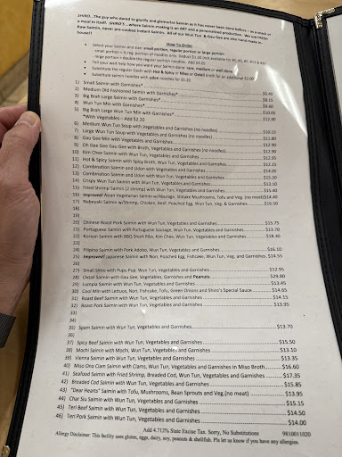 So okay, 2 not really vegetarian options out the window -- but the menu is pretty expansive, so surely there's some dry options of the noodles that can be made without meat? Nope, we were denied ANY possible combination that could give us vegetarian options. They couldn't even do cooked saimin noodles with veggies and some seasoning, they couldn't make a fried version vegetarian, it was overall quite insulting. You have a menu that is 4+ pages long filled with tons of ways to customize your own saimin bowl but you won't give us the decency to make just a veggie saimin? Is that really too hard to do in this day and age?