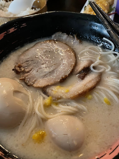 I stopped in with a friend to check out some place we had never been before. We have both lived in Japan previously and enjoy a good ramen every now and then. The location in the Pearl Ridge mall seemed welcoming enough, and I actually like their signage. We were greeted right as we walked in the door but it was not with an “irasshaimase” as they say in many Japanese restaurants. No matter. They promptly brought us utensils, menus and a couple glasses of water. The menu is pretty good. They do have quite a variety, including appetizers, and other foods besides just ramen. We ordered the takoyaki for an appetizer, and I ordered the. garlic, rich Tonkotsu ramen. My friend ordered the spicy Tonkotsu. The takoyaki actually tasted really good, despite the lack of much octopus inside the ball. The ramen was prepared and delivered in a very timely manner. The noodles were a little tough to begin with, but softened up as they sat in the steaming hot broth. I slurped mine up with ease, and it was delicious. My friend seem to enjoy his as well, but he couldn’t finish all of it. The price was a little bit expensive, but seemed reasonable for the flavor. At that price I would hope for a little bit more congenial service and a bit tidier look inside. They had cardboard boxes stacked up at the far end of the restaurant and the staff had virtually no personality whatsoever. But they did get the job done. So overall, I give it four out of five stars. With a little bit cleaner location and maybe a smile every now and then from the staff and a little bit more hearty takoyaki it...