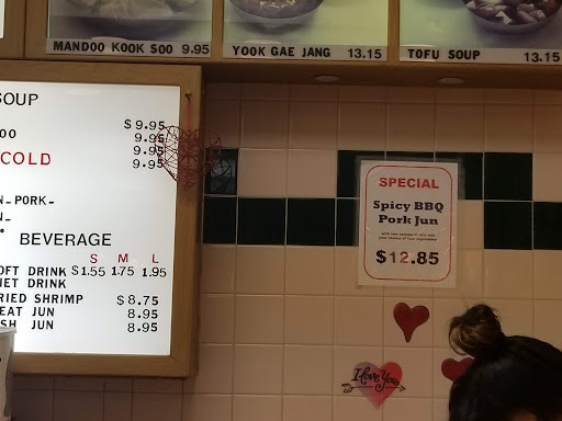 Read moreGiving it 4 stars because I really like the mandu(?). Anyways, they don't accept credit/debit cards, only cash and they will remind you before you purchase food and there is a big sign that says cash only. Plenty of tables and chairs in the restaurant, there is outside seatings at the center. There is a window at the counter where you pick 2 or 3 choices for your plates. I recommend all of it because it's pretty good. I only bought the mandu(? I don't know if that's the right spelling) for $7.95 @11pieces. No bathroom access, the staff are helpful and greets you with a friendly smile. The wait was about 5 mins, maybe because it was such a small order....