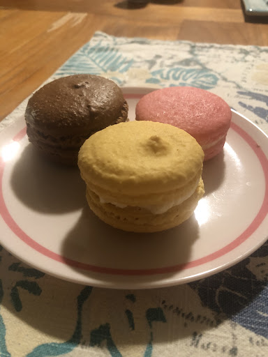 Matcha macaron has a nice matcha 🍵 flavor slightly bitter with sweet. Very good! Mom enjoyed the coffee ☕️ macaron. She said it was good. Very tasty.