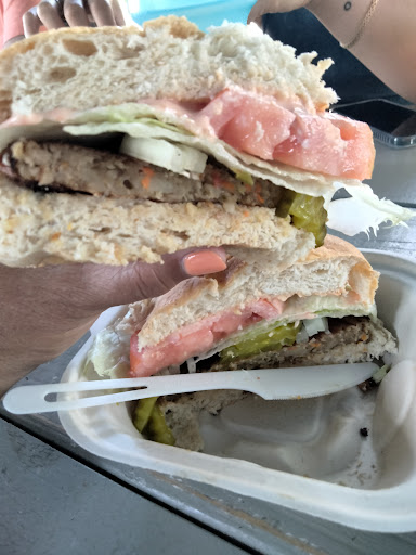 The Loco Moco had a lot of rice, with 2 meat patties and 2 eggs, and enough gravy. The chicken katsu (it's not katsu curry) which comes with Mac salad - but we chose greens - comes with mayo and a BBQ type sauce that complements the crunchy chicken that's cut into strips. The mahi mahi came egg battered in 3 or 4 strips with a mild spicy sauce and ample rice and scoop of Mac salad. The veggie burger was in a bun that's slightly sweet, like Hawaiian bread - onions, lettuce, tomatoes. I mixed the Sriracha bottled sauce and one mayo packet for a nice sauce to spread on the bun.