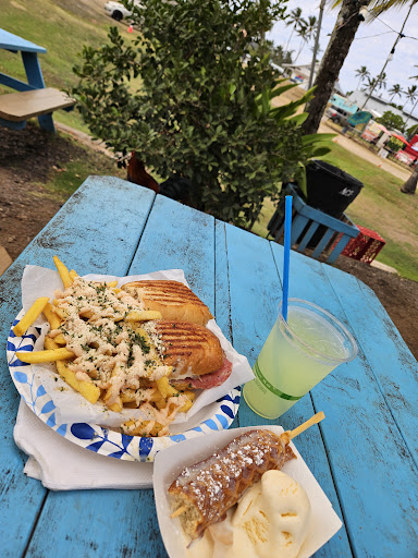 Took a cruise out to Kauhuku to check out this beach bus and see what the hype was about. It is located near all the other food trucks. Ordered some of their food and desserts. Also had their freshly squeezed lemonade, and it was pretty tasty for me. Kids loved the mozzarella sticks. Waffle sticks were okay. The bus burger was good. It was like every other burger, nothing fancy. Spicy chicken burger was spicy, but for me, it was like there was something missing to that spice. Loaded fries and nuggets with fries were okay. I think the best dish there was their deep fried cheesecake. It had sooooo much flavors popping in our mouths that we really enjoyed it. 😋 Also, I had the corn with everything on it, but my daughter didn't like it. It was too dry and lacking flavors for me since I had to eat it all. Lol Would I come back? Definitely would just for those deep fried cheesecakes 😍😍...