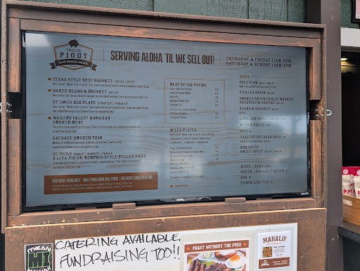 Everything was amazing amd is a must stop! My husband and father-in-law are BBQ experts and have done competitions - they were both very impressed with each item we ordered. We had the ribs, brisket, sausage trio, imu-kahlua pork, and peach iced tea. Each meat item was tender, smokey, moist, and super flavorful. The side of coleslaw was the best we had from BBQ joints. The peach iced tea is a summer special and super peachy with 2 wedges of peaches in the drink. It is located behind and through the Ko Hana Distillers, which is a rum distillery. We stopped by after lunch for tastings and we wanted to take it all home with us. Both...