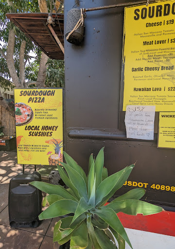 Read moreMy husband and I visited this cute little pizza spot when walking in downtown Haleiwa and noticed it doesn’t have any reviews so we thought we would chime in. It’s mostly a food truck concept with long tables for seating. They serve wood fire pizza and honey slushes. I can only comment on the pizza as we didn’t partake in the honey drinks but the pizza was top notch. The crust is a sourdough crust and not too thick. It was perfectly baked and the ingredients were very high quality. We tried the cheese and margherita pizzas. Both were excellent and some of the best pizza we had on the island. They are a bit pricey for the size of the pizza but definitely worth a visit if you’re craving pizza in Hailewa and the...