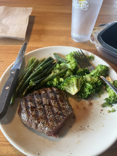 After we ordered, our waitress was busy helping the people behind us figure out separate checks. I am not sure if that is why I never received my salad before the meal, but it did not arrive with the meal either. Also, the extras I ordered with my steak were missing when the order showed up.