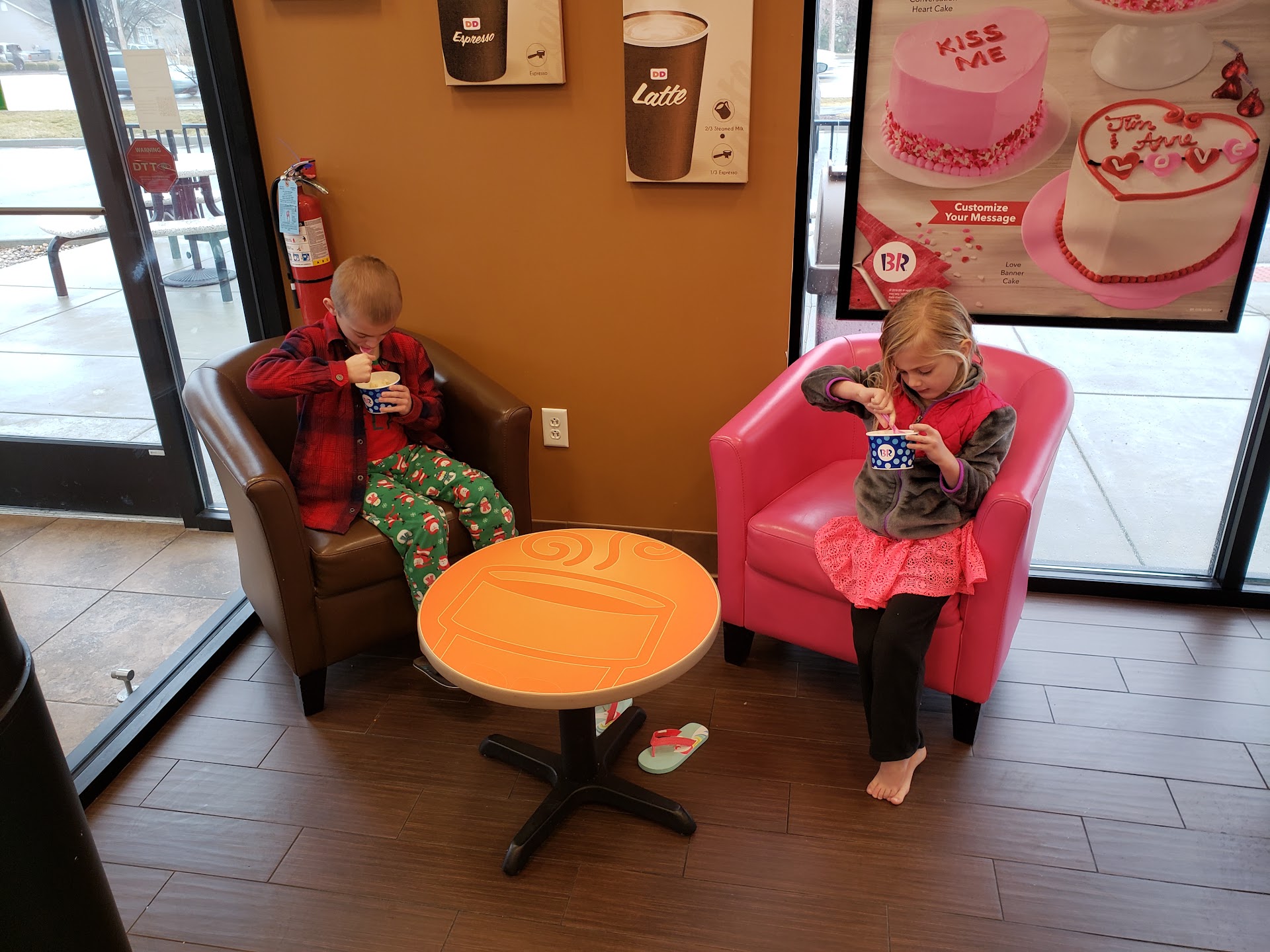 Read moreGreat ice cream, but VERY service. The employees were nice, but it was like 45 minutes before closing time and it seemed like they had already checked out & didn't want to bother to serve anyone else.... They had broken down most of the store, and took almost 10 minutes to get me my 2 simple ice cream cups because they were too busy working on breaking down equipment for closing instead of getting my super quick and easy order ready. And when you have a tired and crabby toddler in the car, who was promised ice cream, and your family literally waiting for you to eat in the parking lot with their ice cream melting... Because the dining room is still inexplicably closed.... It's super frustrating to have to wait so long for such a simple order because the workers would rather get the store ready to close than serve their waiting customers who desperately needed to get going and didn't expect to wait 15 minutes to get 2 simple ice cream sundaes.