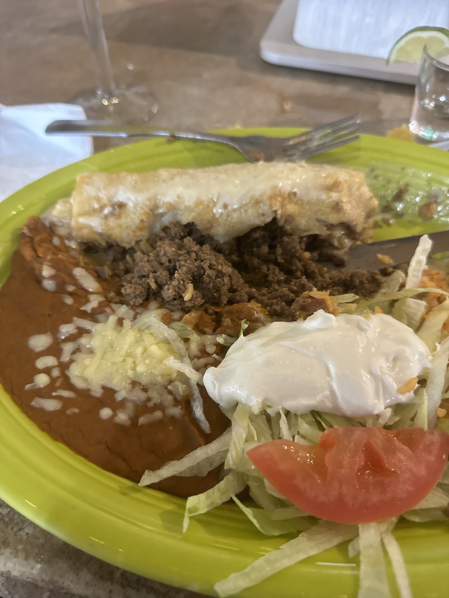 Tonight we decided to try it once more. After some difficulty with commmunicating my order, I was ready to sit back and enjoy my chimichanga, one of my favorite foods at any Mexican restarurant, I was very disappointed to fint burnt steak, green peppers, and onions in what was supposed to be a beef chimichanga. When I asked the server about it he said it was a fajita chimi. I explained that it was not what I ordered and had such a hard time communicating with the server I finally gave up. My husband ordered the enchilada and tamale and they were both so dried out that the sauce resembled paint and when my huband showed them the poor quality of food the server just took it back to the kitchen and never asked if he could replace it with a new order. we both went home hungry and disappointed tonight.