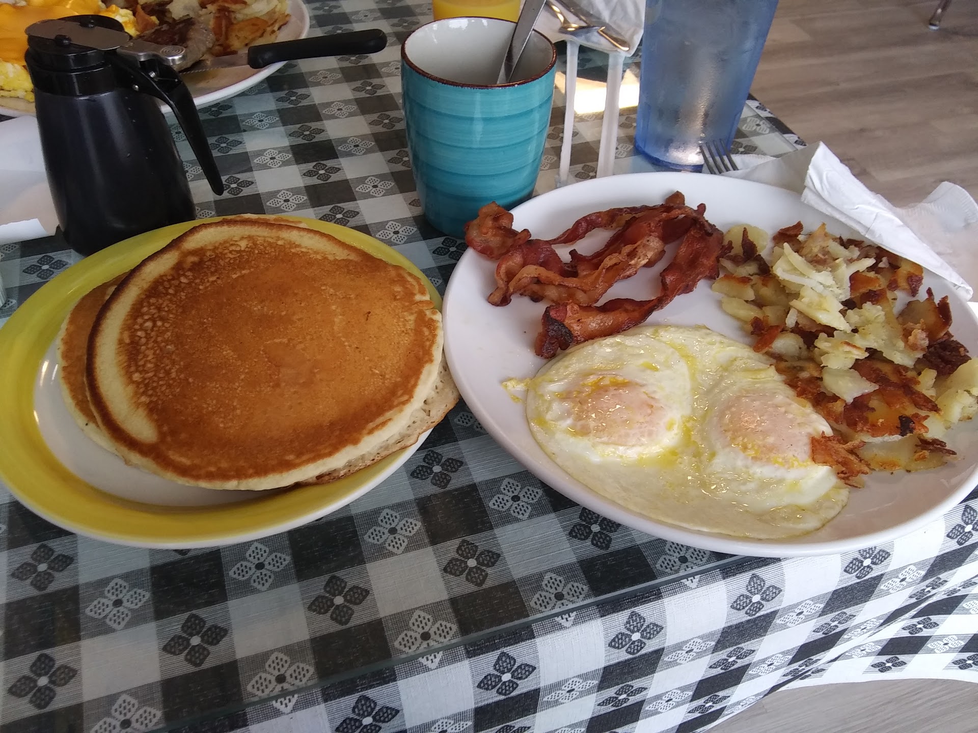 I ordered delivery this morning and 1. The bacon was slightly burned because it had black on it. I just ate around it. 2. My pancakes had a strand of light brown hair in it which grossed me out so I threw it away and called to inform the restaurant. The girl told me the owner wasn’t there so I said forget it and the call ended. I didn’t know it was the owner’s daughter until she told me on the 2nd call to the restaurant because Within 10-15minutes of getting off the phone with her I had diarrhea 2 times and my stomach is still upset. I called back to speak to her again to inform her of that too. I simply asked what did they do to my food? She said they prepared it as usual. I said it also depends on how you prep and prepare the food as well. The daughter said that the owner, her dad, will call me back tomorrow. I will not be ordering anything from this cafe again and hope it doesn’t happen to anyone else. This was my first and last time ordering from this place. I got burnt bacon, hair in my cakes and diarrhea on my first experience which is why I posted this review and pray everyone else never have an experience like mine. Whatever happened to wearing a hair net when preparing foods in restaurants to prevent that...