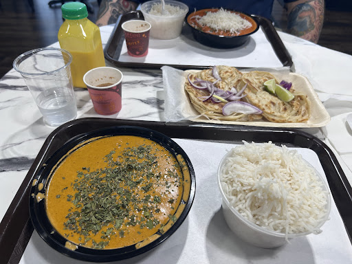 We need to get the word about the best Indian food in the St. Louis Metro! Nestled in Ofallon, we got the chance to eat in finally after only devouring through door dash. The atmosphere inside is warm and inviting by the friendly staff. Not sure I saw a single person in the place in the dining area or behind the counter without a smile! We ordered our food and snagged a seat. While waiting we were greeted with an offer to try some Indian tea. First time for that, and it was amazing. It's akin to Turkish coffee but not so strong with a strong aromatic use of cardamom. Just the right amount of sweet to eliminate any bitter. Very good. My wife got her usual, Paneer Butter Masala bringing together the wonderfully sweet curry flavors with a nice cheese that holds a tofu like texture. I got one of my favorites, Chicken Tikka Masala. The chicken is always good perfectly moist for the curry stew that brings so many great flavors together. I got a spicy version and enjoyed getting a little kick in it. Both are served with a heaping serving of basmati rice cooked firm and sticky. Our youngest got the Chicken Katti roll, a nice wrap that brings together a nice spice mix to the turmeric party. It's served with some crispy seasoned fries that we all enjoy. We always get some Malbar Paratha, a beautifully flaky bread with a buttery flavor. Great to dip into your curry stew or just pick at and eat. I also got a mango lasso bottled to drink. Not even certain what flavors hit me but mango is complimented with some spices in a yogurt drink. So good! Hats off to the chefs for the amazing food! Thank you to the staff for being so friendly! Really encourage people to try this place out, we need it to stay! *They also have a ton of ice cream and cakes to serves. Have tried their samosa before and it's amazing with a sweet sauce...